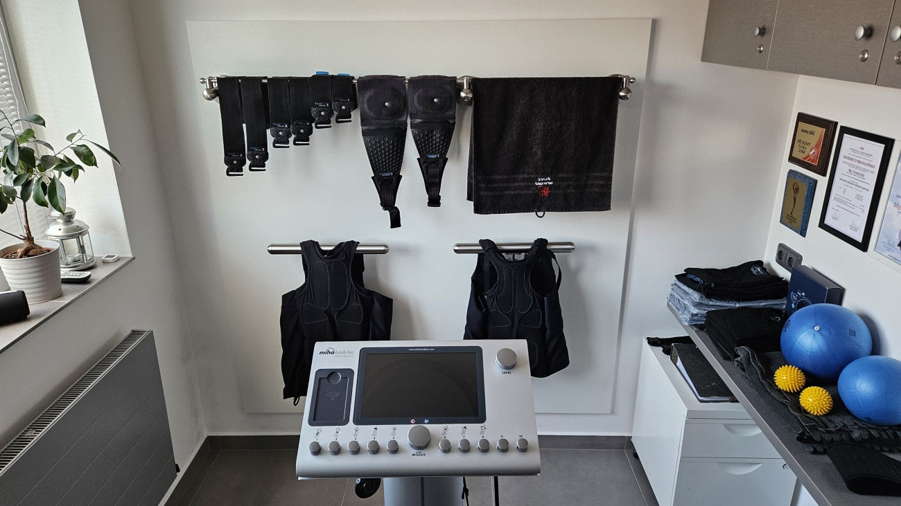 Trénink probíhá na přístroji "miha bodytec II medical" německého výrobce.