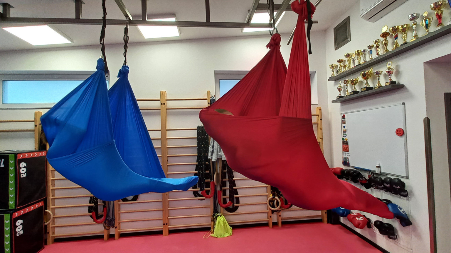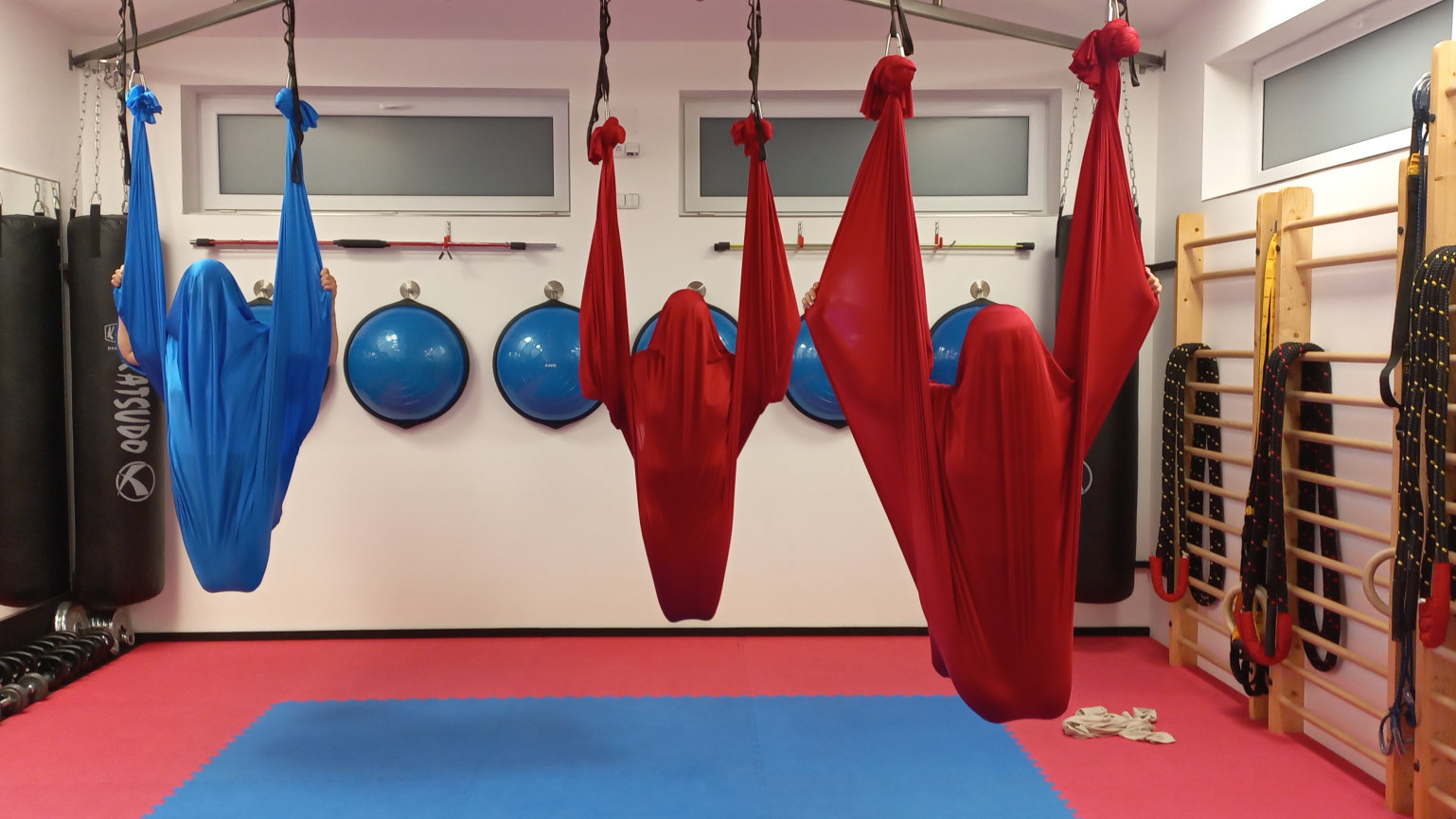 Připravte se na jedinečný zážitek cvičení v hamakách. Naše hamaky jsou velké a pružné, poskytují vám pocit pohodlí a bezpečí při každém pohybu. Můžete si je nastavit do různých výšek, což umožňuje širokou škálu cviků - od uvolňujícího protahování, přes cílené posilování, až po vzrušující akrobatické prvky. Tato forma cvičení nejenže posílí vaše tělo, ale také dodá nový rozměr vašemu fitness rituálu.